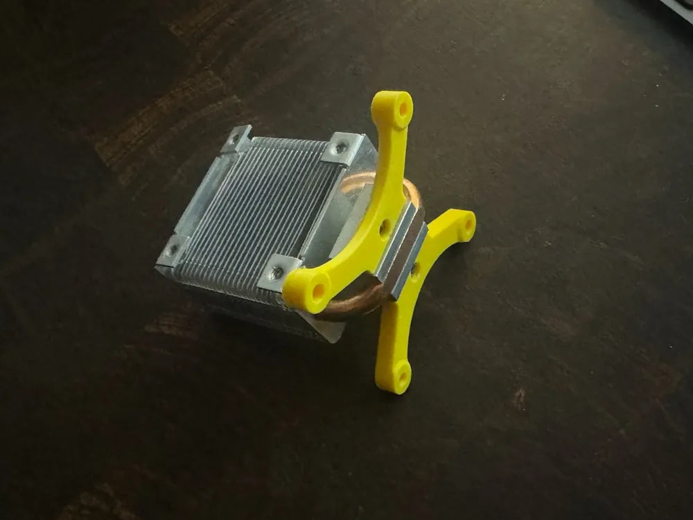 The previous adapter for the Bitaxe Gamma (with four or two holes) does not have the optimal geometry. This complete redesign has improved the cooling performance of the ASIC on the Bitaxe Gamma by around 5°C.