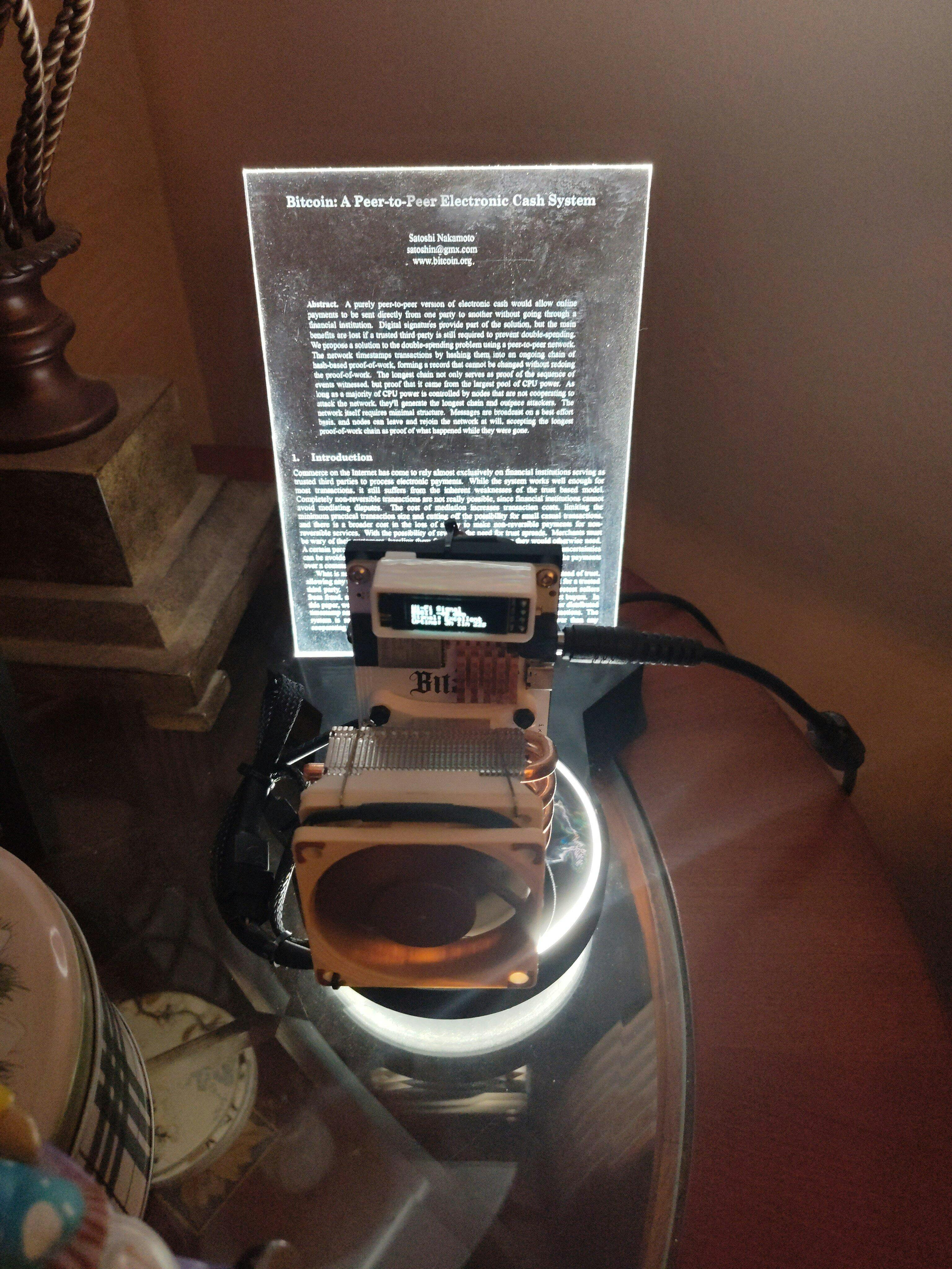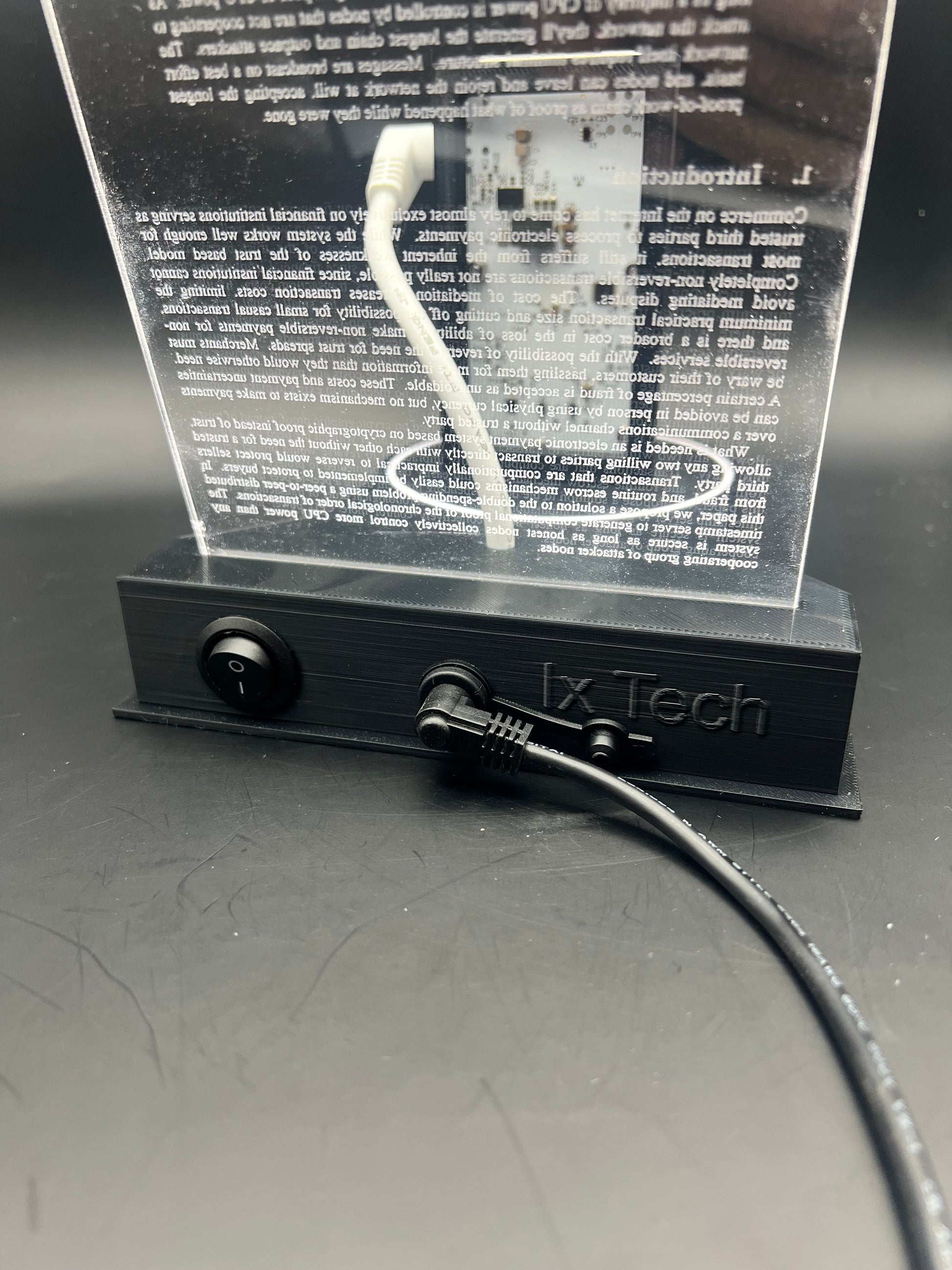 Sleek Design — Focusing on the principle of transparency, we have laser etched the whitepaper onto clear acrylic and illuminated with white LEDs.