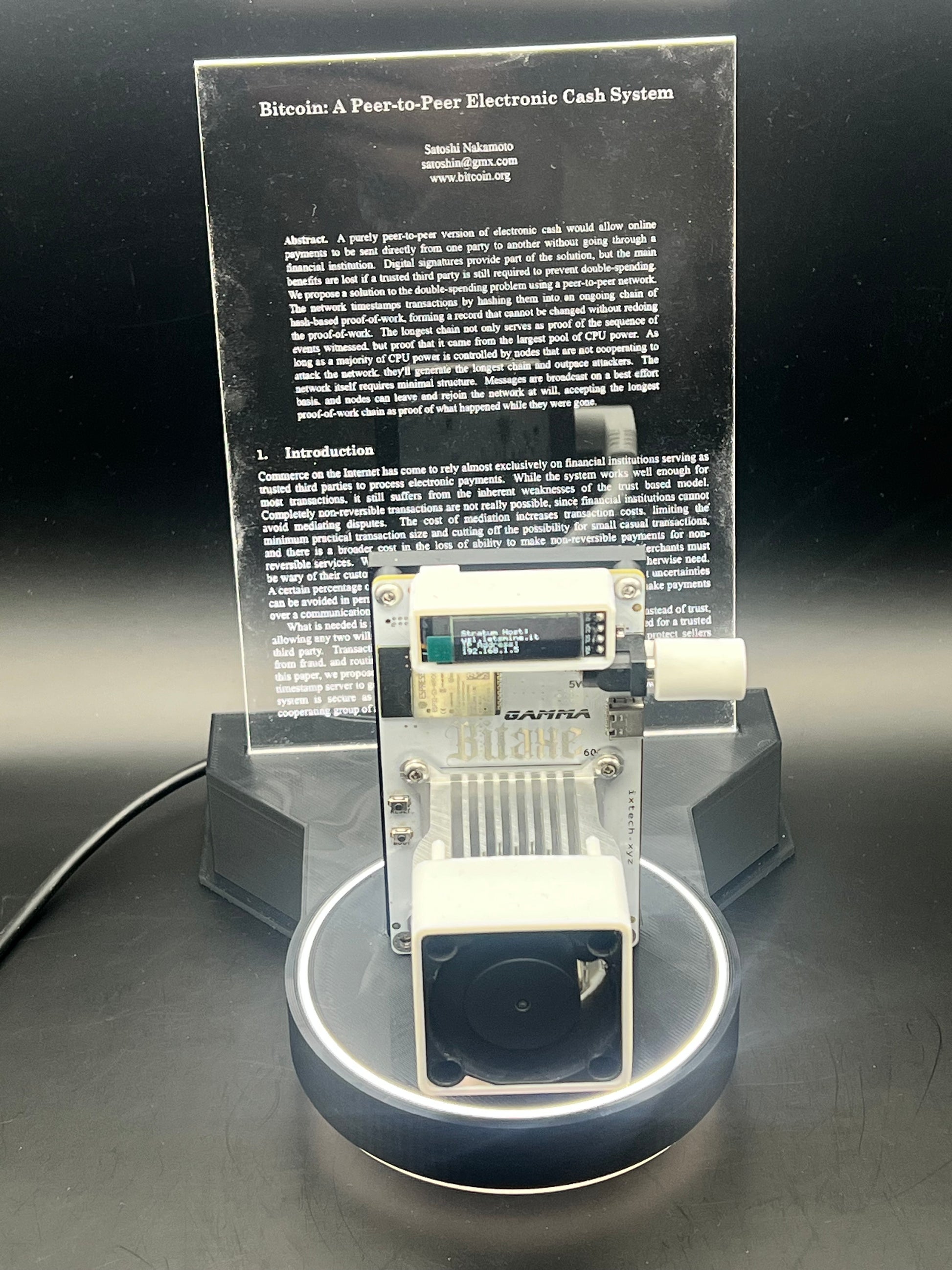 Solid foundation like Bitcoin — We have enhanced the pedestal that the gamma sits on with thicker power cable, illuminated base and on/off switch in the rear